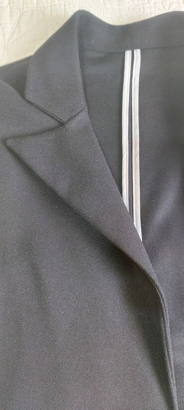 Kişi palto – FORMAT Mens Wear - Model: M.K Palto - Parça: Kashmir (kaşmir tərkibli) – etiketdə 70% viskon, 20% polyester, 2% likra qeyd olunub - Rəng: tünd (qara/tünd göy tonlu) - Ölçü: 50 (etiket...