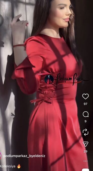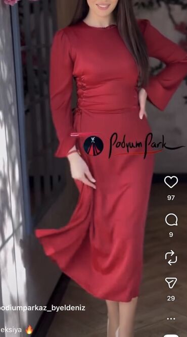 Qırmızı atlas effektli midi don