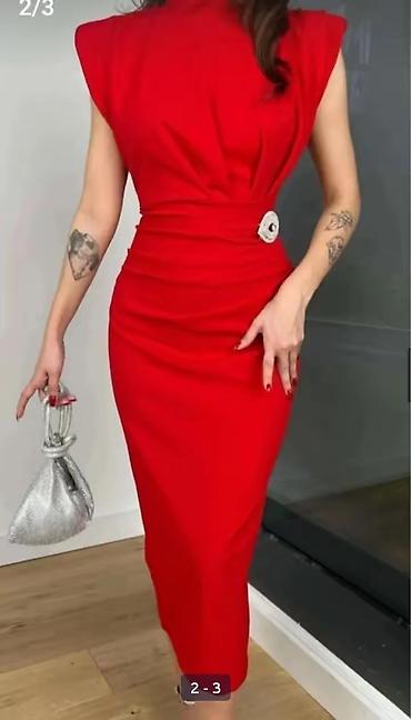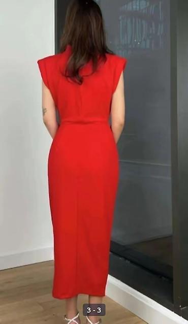 Qırmızı midi don - Stil: Zərif, bədənə oturan siluet, qolsuz (yuxarı