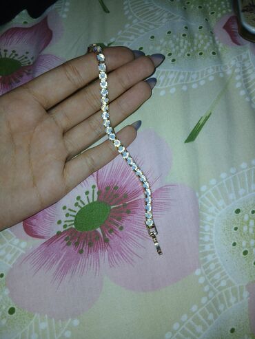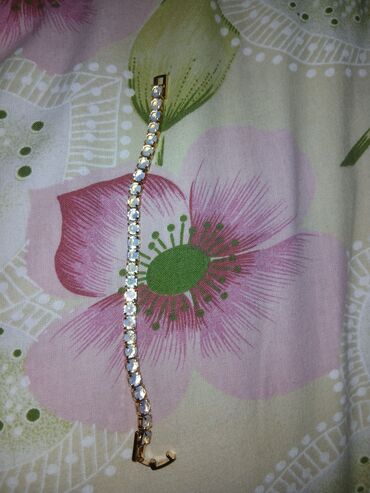 Qızılı rəngli zirkon qaşlı qolbaq - Zərif tennis üslublu dizayn: qolbağın bütün perimetri boyunca marquise (yarpaq formalı) kəsimli, şəffaf zirkon daşlar sıx sıralanıb və yüksək parlaqlıq verir. -...