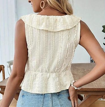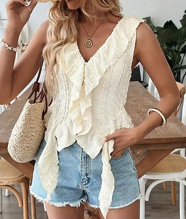 Qadınlar üçün yay bluzası - Model: qolsuz, V-yaxa - Rəng: krem/ivori