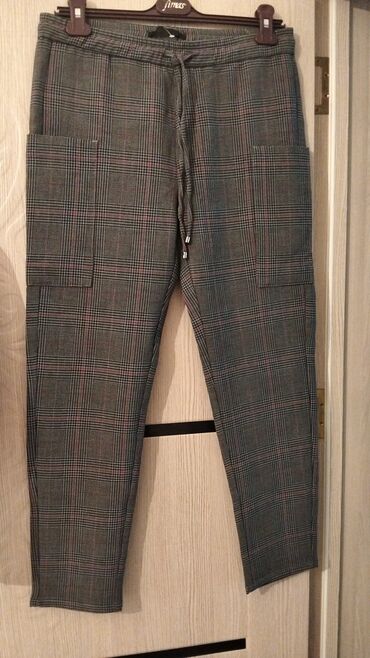 1) Qara‑boz rəngli qəfəs naxışlı şalvar