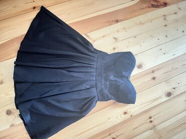 Qara kokteyl paltarı – tüllü ətəkli, dizdən yuxarı model 12-14 yaş üçün uyğundur - Rəng: qara - Siluet: beldən yığılan, A-kəsim - Üst hissə: elastik parça, çiyinləri açıq görünüş verən enli yaxa x...