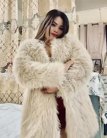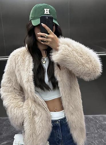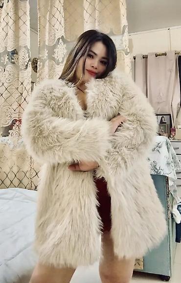 Məhsul: Süni kürk qadın paltosu - Rəng: açıq bej/krem - Material