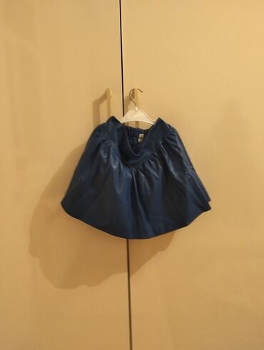 Qısa ətək – tünd mavi, A-kəsim, bollaşan model. - Parça: parıltılı