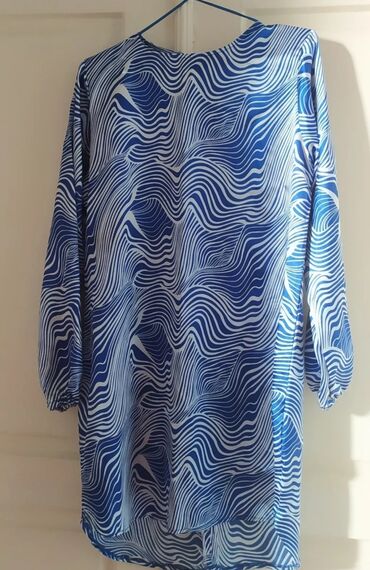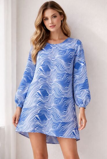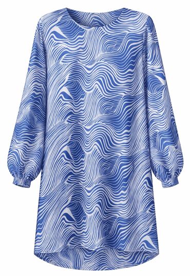 Mavi-ağ dalğalı naxışlı uzun köynək/tunika