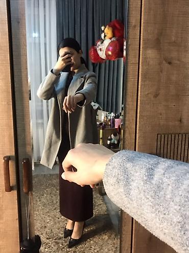- Tünd göy trenç üslublu yüngül palto: Dizdən aşağı uzunluq, düyməli qollarda qayış detallarına bənzər element, axıcı nazik parça. Üstündən rahat geyinmək üçün geniş kəsim.