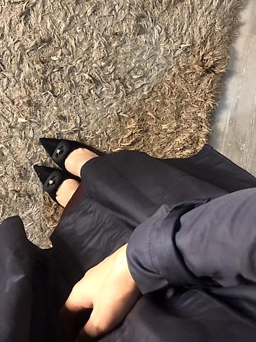 Ölçü təsviri (şəkillərə əsasən): Orta bədən ölçüsünə uyğun siluet. Rənglər: qara (2 ədəd), tünd göy (1 ədəd). Stil: gündəlik, ofis və city-chic kombinlər üçün. Şəkillərdə topuqdan yuxarı uzunluq və qara klassik ayaqqabı ilə uyğunlaşma görünür.
