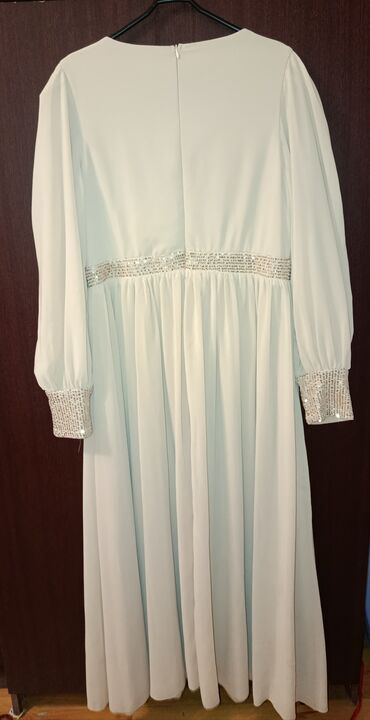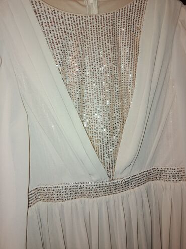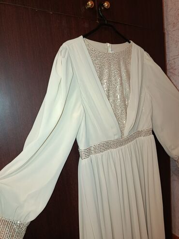 Uzun ziyafət/nişan donu – açıq krem/ağ tonlarda. Yenidir. 150₼ alınıb