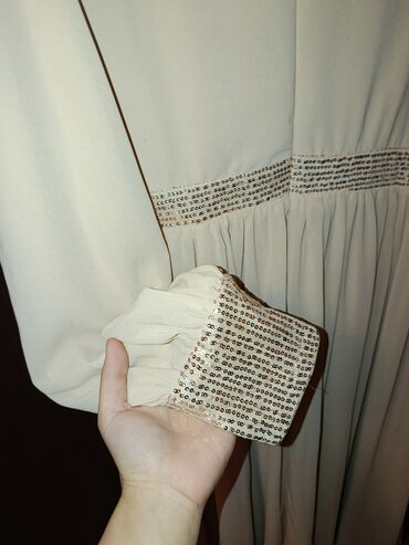 Uzun ziyafət/nişan donu – açıq krem/ağ tonlarda. Yenidir. 150₼ alınıb 100₼ satılır.