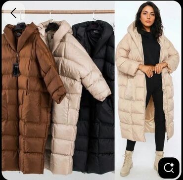 S razm etiketli 85 m! (150 m alinmiwdi Uzun puffer qadın palto – krem/bej rəngdə - Model: uzun ölçü, dizdən aşağı kəsim - Rəng: açıq krem/bej - Kapüşonlu - Üfüqi tikişli “puff” panellər – isti sax...