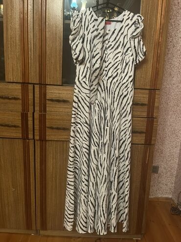 Zərif zebra printi ilə diqqətçəkən, rahat və qadınsı siluet yaradan uzun don.
