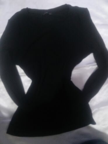 2 eded Qadın bluzası – qara rəngdə, uzunqollu, elastik trikotaj parça. - Model: bel hissəsində büzgülü və tənzimlənən iplə yığma detallı. - Parça: zərif fakturalı/yoğun trikotaj, bədənə oturan elas...