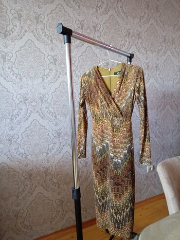 Qəhvəyi rəngdə, süni dəri görünümlü qlappli kəsimli don. - Ölçü: S - Qiymət: 30 manat (şəkildə qeyd olunub) - Model: Wrap (çarpaz) ön hissə, beldə bağlama kəməri - Uzunluq: Dizə yaxın midi - Qollar...