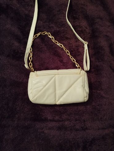 Ağ rəngli, zəncirli çiyin çantası - Material: yumşaq dərili üst, romb