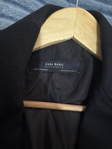 Zara palto. Qara reng. Qisa modeldir. 38 olcu. Cox az geyinilib. Yun’dur