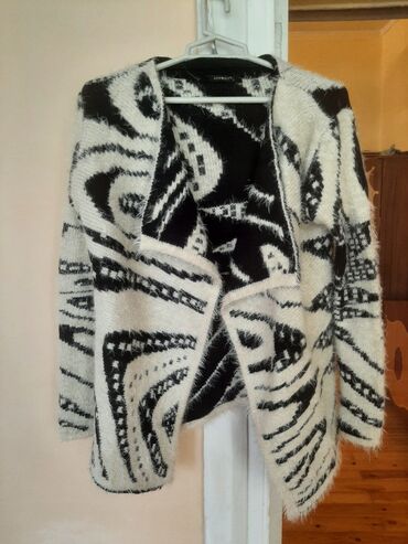 ZARA brendinə məxsus qadın toxunma kardiganı. Ağ rəngdə, V yaxalı və qabaq tərəfində bir düymə ilə bərkidilir. Geniş və rahat kəsimi ilə gündəlik istifadə üçün uyğundur. Qabarıq toxunma naxışları ilə bəzədilmişdir. Uzun qolları və elastik manşetləri var. Həm sərin havalarda istilik təmin edir, həm də dəbli görünüş yaradır.