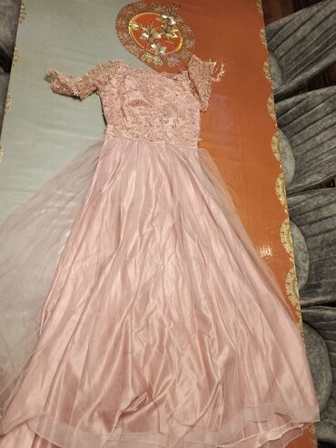 Zərif pudra-çəhrayı rəngdə uzun ziyafət/libas. Cəmi 1 dəfə geyinilib