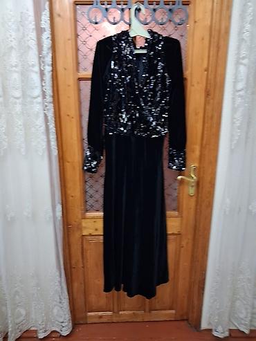 2) Qara məxmər uzun paltar: üst hissə parıltılı payetlərlə bəzədilib, uzun qollar, zərif parıltı effektli klassik siluet.