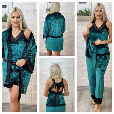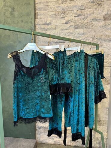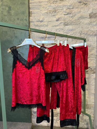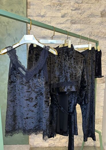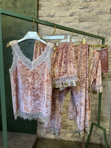 Qadınlar üçün 6 hissəli ev geyim dəsti – Velvet/qatı parça, krujeva detallı