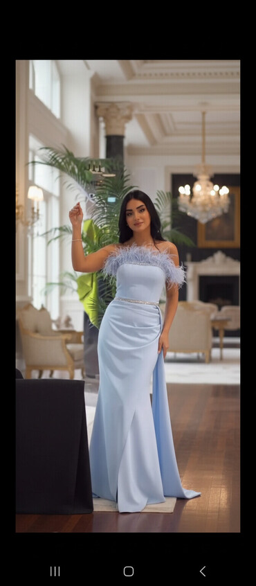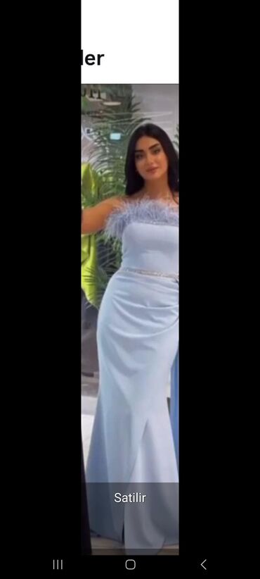 Zərif ziyafət/libas - Rəng: toz-çəhrayı (lilac tonlarında) - Model: uzun, A-kəsimli, yüngül flarlı ətək - Parça: şəffaf tül üst qat, incə romb naxışlı; altlıqla birlikdə - Yaxa: V-kəsim - Qol: 3/4...