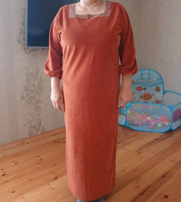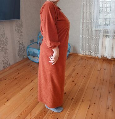 Tünd narıncı rəngdə uzun qadın paltarı