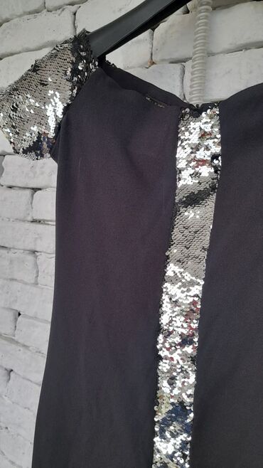 Qara/qrafit atlas parıltılı, birqollu kokteyl/axşam geyimi. - Dizayn: Asimmetrik və bir çiyindən açıq kəsim. Bir qol tərəfdə volan detalı. - Bəzək: Boyun xəttindən başlayıb ön hissə boyunca və ətə...