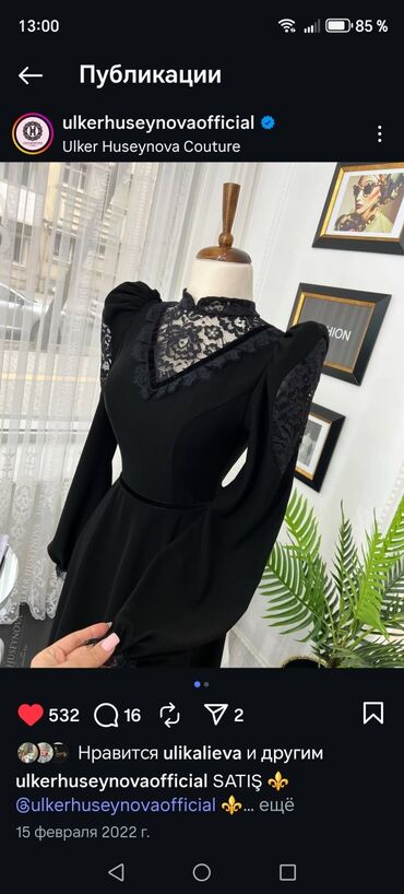 Yüksək boyunlu və uzun qollu qara rəngli qadın libası. Qollarda və boyun hissəsində naxışlı güpür detalları ilə bəzədilmişdir. Zərif görünüşü ilə xüsusi tədbirlər üçün uyğundur.