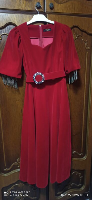 Qırmızı ziyafət/libas – ZERATU LIFE, ölçü 40 - Model: Midi uzunluqlu, A-kəsim ətək - Rəng: Parlaq qırmızı - Yaxa: Dairəvi - Qol: Dirəkdən aşağı uzunluqda şar formalı puff qollar - Detallar: - Ö...