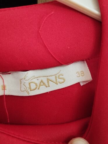 Etiketdə “DANS” və “38” göstərilib. Rəng: canlı qırmızı, qara püsküllü.