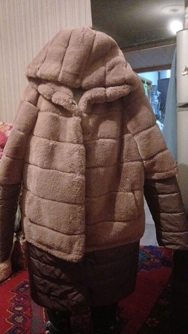 - Qadın qış gödəkçəsi - Ölçü: M (şəkildə qeyd olunub) - Qiymət: 5 AZN (şəkildə göstərilib) - Rəng: bej - Model: yüngül şişmə tipli, ön hissədə fermerli bağlanma - Kapüşon: tüklü haşiyəli ...