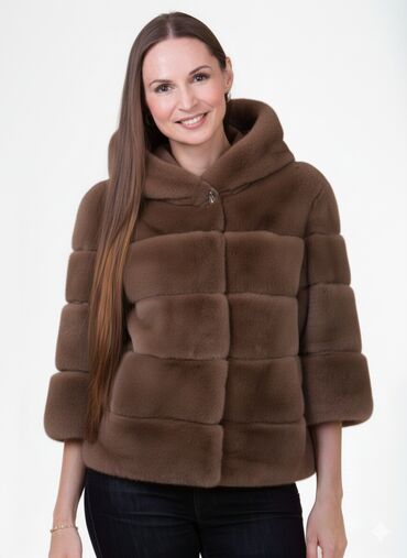 Qadın qış gödəkçəsi – qısa model, kapüşonlu - Rəng: isti qəhvəyi/tünd bej - Material: suya və küləyə davamlı parça, içi həcimli isti dolduruculu - Kapüşon: geniş və çıxarıla bilən tüklü haşiyə (sa...