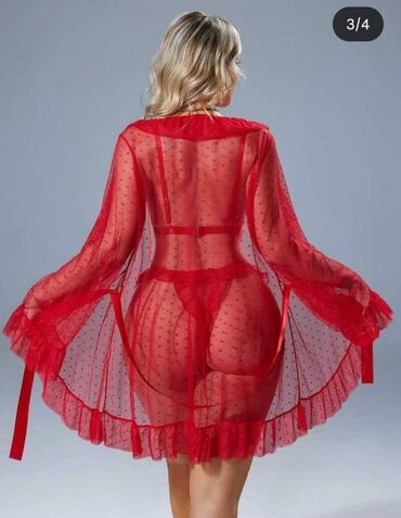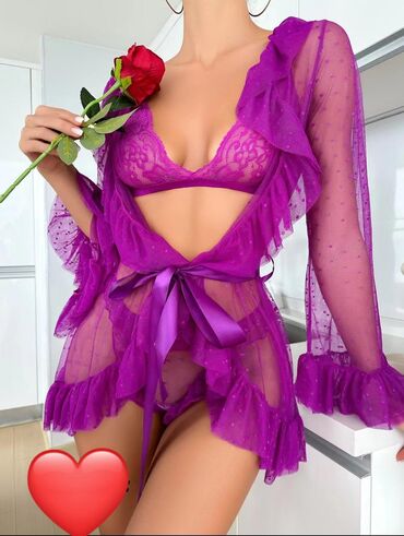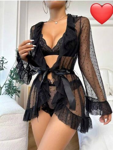 Şəffaf qısa xalat və lingerie dəsti
