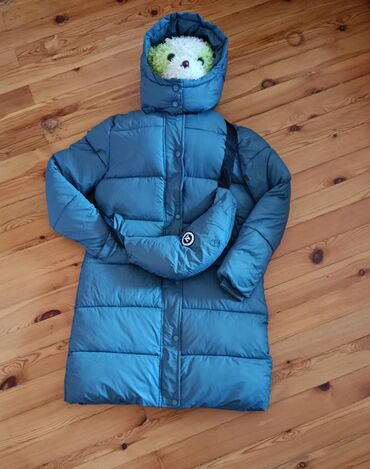 Yastı tikişli qışlıq puf şüşmə gödəkçə - Rəng: açıq yaşıl (dumanımtıl), iç astarı krem/bej - Model: kapüşonlu, iplə tənzimlənən kapüşon - Bağlanma: ön hissədə fermuar və üst qapaqlı düymə/snaps - ...