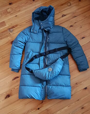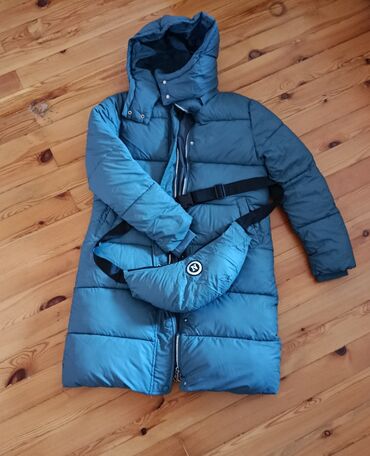 YeniMəhsul: Uzun, kapüşonlu puffer qış gödəkçəsi + uyğun bel/çiyin çantası