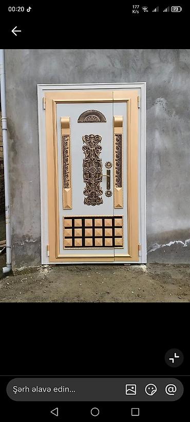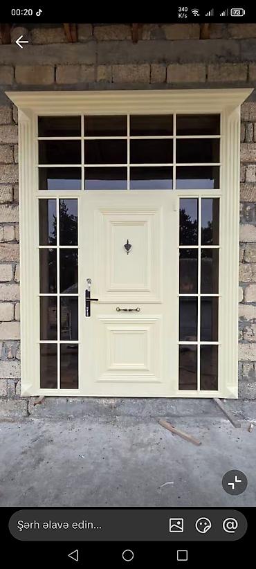 - Fərdi dizaynda yeni giriş qapılarının hazırlanması: tək və ikili yarpaqlı, yan şüşəli və üst fanarlı variantlar