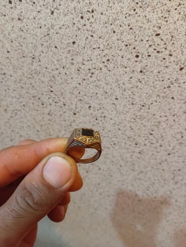 Kişi üzüyü – klassik və zərif dizayn - Material: gümüş rəngli metal korpus - Mərkəz daşı: kvadrat formalı, parlaq qara daş - Çərçivə: qızılı tonlu bəzək haşı ilə vurğulanmış kvadrat kaset - Yan hi...