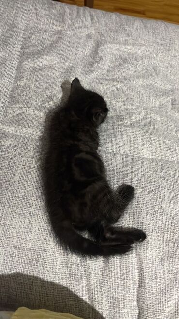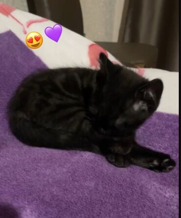 Qara pişik balası - Tam qara rəngli, parlaq xəz - Yumru başlı, iri qulaqlı, ifadəli bal rəng gözlər - Zərif və çevik bədən quruluşu - Ev şəraitinə uyğun, sakit və oynaq xasiyyətdə - Qum qabına öyr...