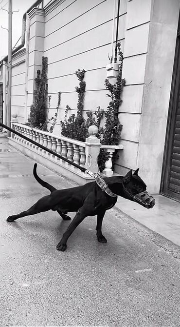 Heyvan: it öğrədilmiş, qısa xəzli, qəhvəyi rəngli Cins xüsusiyyətləri: güclü bədən quruluşu, əzələli, orta ölçü Detallar: - Boyunluq və zəncirli kəmərlə birlikdə - Qulaqlar qısa kəsilmiş - Sinə v...