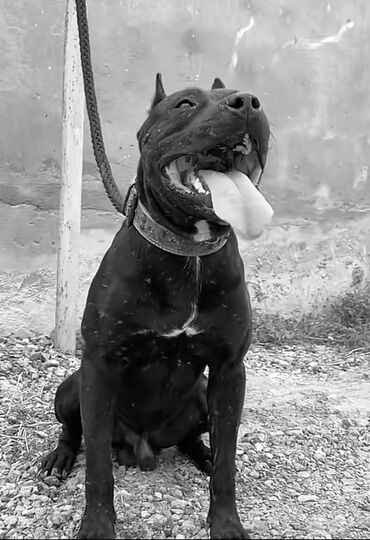 Amerikan Pitbull tipli (qısa tük, atletik bədənli) it. - Rəng: boz (blue/grey) – sinə və pənciklərdə ağ ləkələr - Boyunbağı: mavi - Qulaqlar dik, burun qısa, əzələli quruluş - Enerjili, oyaq və sah...