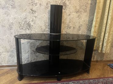 Salam Xaçmazdadır.Qara şüşə TV altlığı / media konsolu - Material: qalın temperli qara şüşə rəflər, metal dayaqlar - 4 səviyyəli quruluş: iri üst səth televizor üçün, ortada əlavə yüksəklikli rəf ...