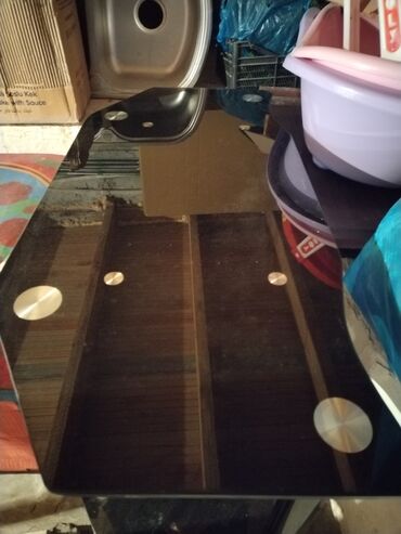 - Material: qalın temperli qara şüşə səthlər, metal bərkidicilər və sütunlar