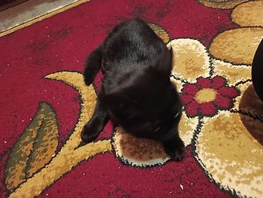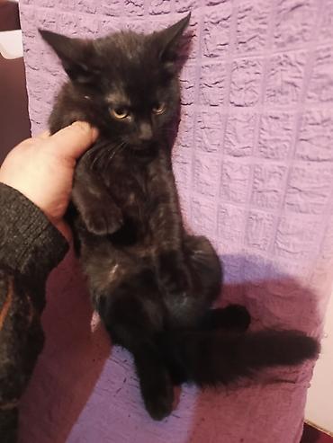 Qara tüklü balaca pişik balası sizdən 1 Həddədir ayrılıb müstəqil yemək yeyir