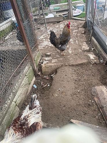Satılır: Brahma cinsi toyuqlar dəsti - 1 ədəd ağ-qaralı, iri gövdəli xoruz (Brahma). - 3 ədəd qəhvəyi naxışlı, tüklü pəncəli toyuq (Brahma). - Hamısının ayaqları tüklüdür, sıx lələklənmə və güclü ...