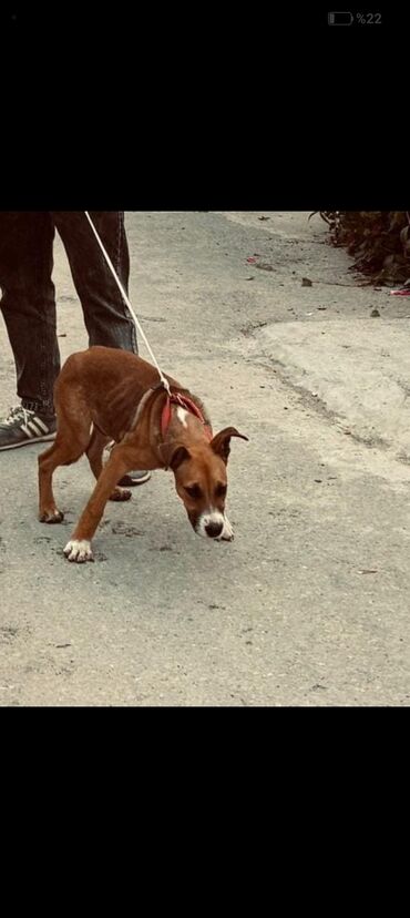 Cox gozəl itdir 2.5 aylx peyvəndli otrmag salam verməyi bilir endrm ederem hazrlga gedrem deye baxamram Sevimli it balası. Orta ölçülü, qısa tüklü, tünd-qəhvəyi/brindle rəng çalarında. Qulaqları t...