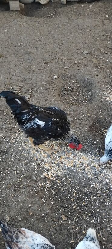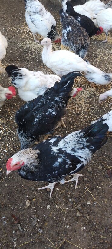Təsvir: - Şəkildə görülən yerli cins toyuqlar sürüsü. - Rənglər: əsasən ağ-qara ləkəli, qismən tam ağ və qara nümunələr. - Yaş qrupu: böyüməkdə olan cücə-yenicavan toyuqlar (mix). Horozlar da var. ...