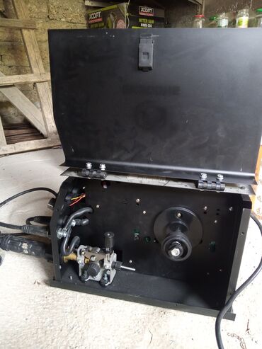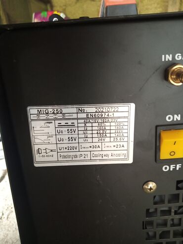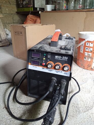 OKBOONS MIG-250 qaynaq aparatı. Bu aparat müxtəlif qaynaq işləri üçün nəzərdə tutulmuşdur. Üzərində cari və gərginliyi tənzimləmək üçün düymələri var. Həmçinin, içərisində qaynaq məftilinin yerləşdirilməsi üçün bölmə mövcuddur. Daşıma üçün tutacağı var.