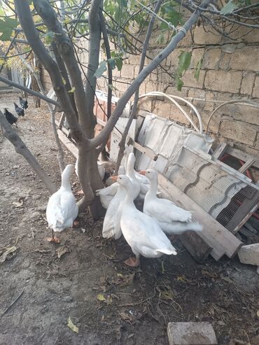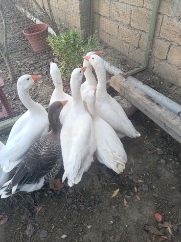 Ağ qazlar – kənd təsərrüfatı və həyət üçün. - Növ: Ağ qaz (yerli saxlanış) - Rəng: Ağ tüklər, narıncı dimdik və pəncələr - Say: Bir neçə baş sürü halında - İstiqamət: Ət və yumurta üçün uyğun, həm...