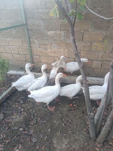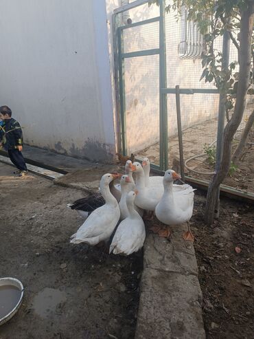 Qarışıq təsərrüfat quşları satılır - Qaz sürüsü: ağ və boz-qara zolaqlı (Seben/Boz tipinə bənzər) iri bədənli quşlar. Sürüdə dişi və erkək fərdlər var. - Ördəklər: ağ rəngdə, açıq sahədə sərbəst g...