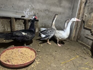 Satlıq qaz və ördək sürüsü - Növ: kənd təsərrüfatı quşları – qazlar və ördəklər - Tərkib: əsasən ağ rəngli qazlar (narıncı dimdik və pəncəli), aralarında 1–2 boz/ala qaz; bir neçə ördək (qara, yaş...